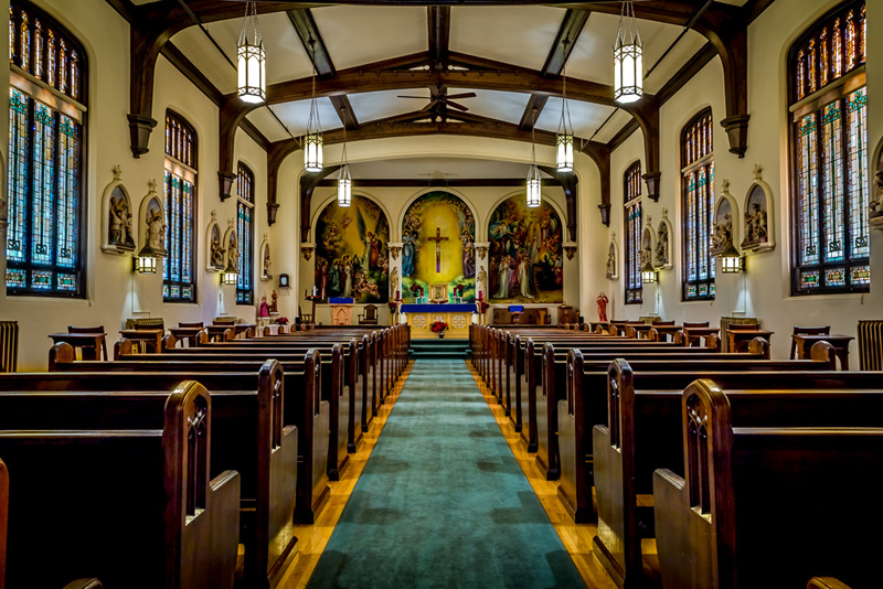 Located on the 3rd floor, the jewel of the Ursuline Centre is the exquisitely beautiful chapel which has graced this historic structure since 1912. The murals of Saint Ursula and Saint Angela Merici, painted on canvas by Mother Raphael Schweda, were hung in 1927.